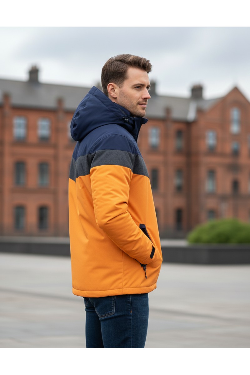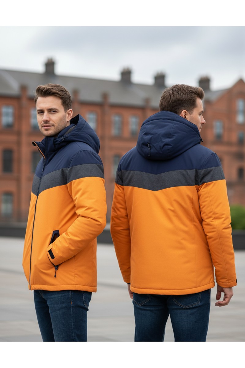 Kurtka męska ocieplana z kapturem - 3PSC - pomarańczowa/szara/czarna