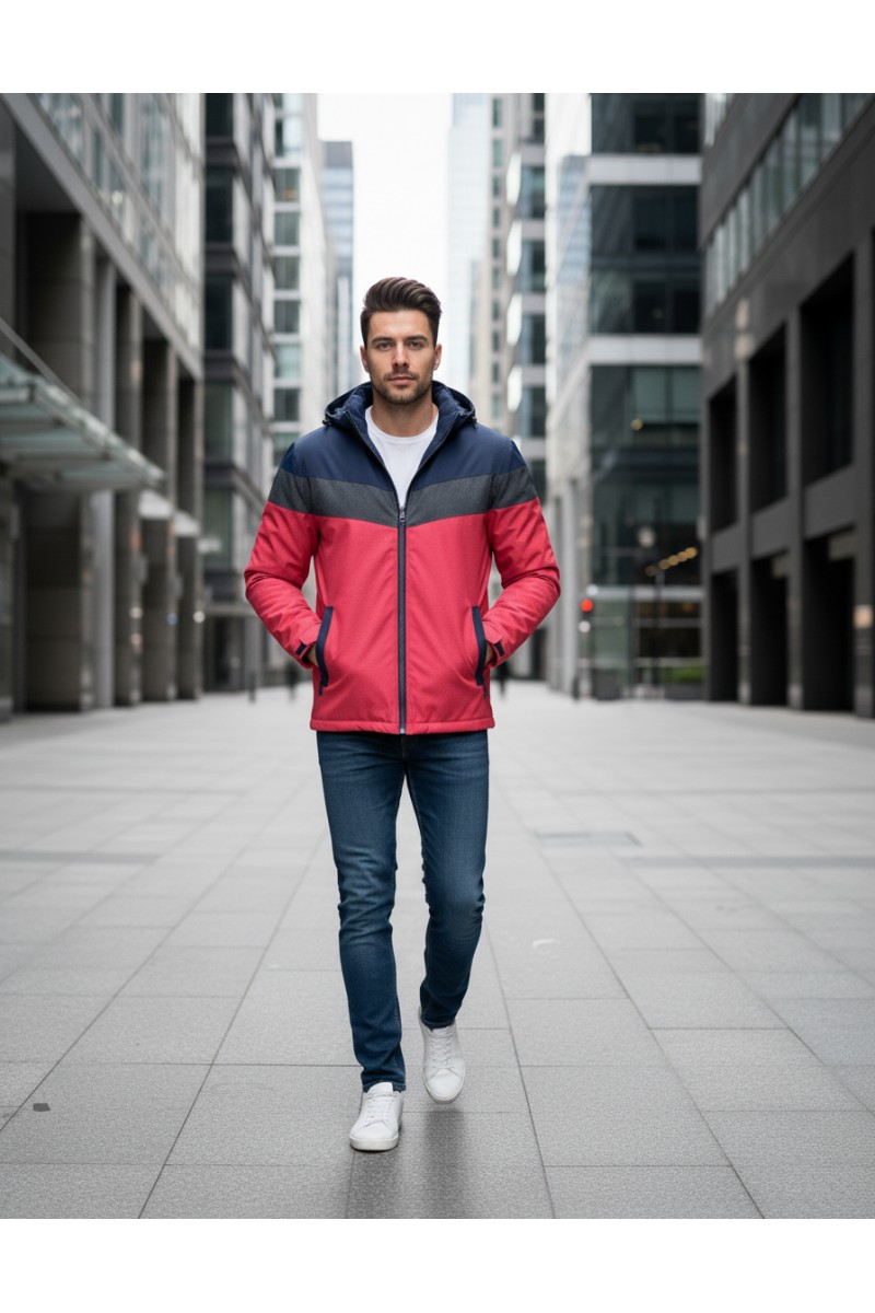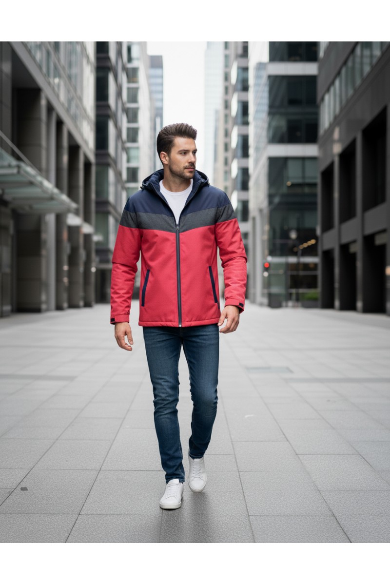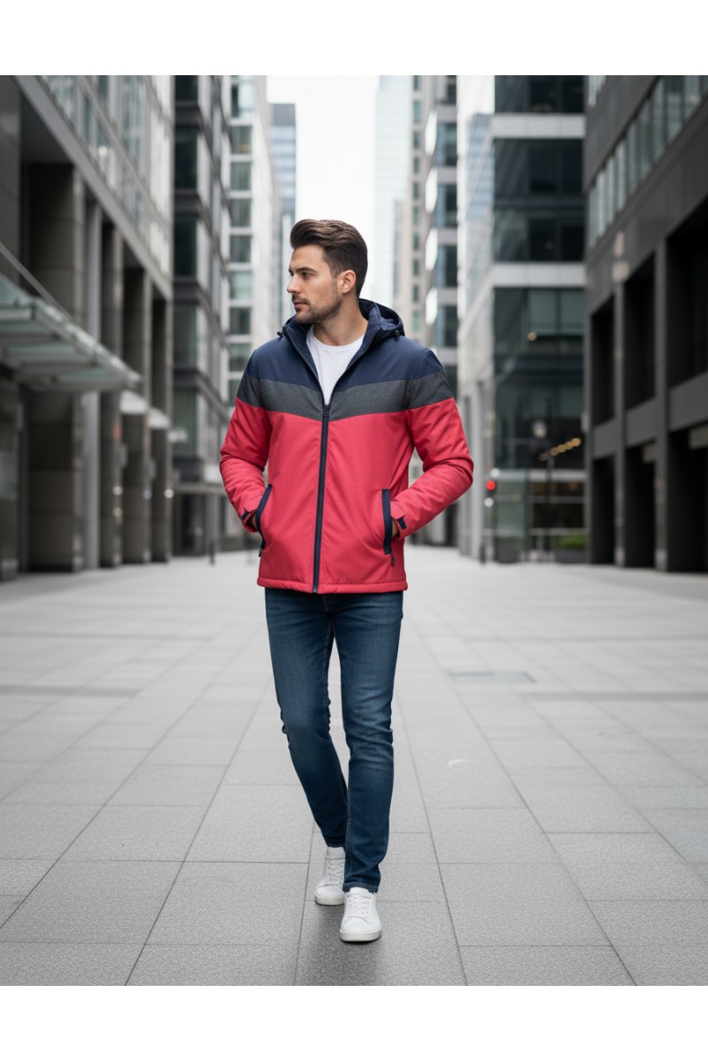 Kurtka męska ocieplana z kapturem - 5GC - granatowa/szara/czerwona