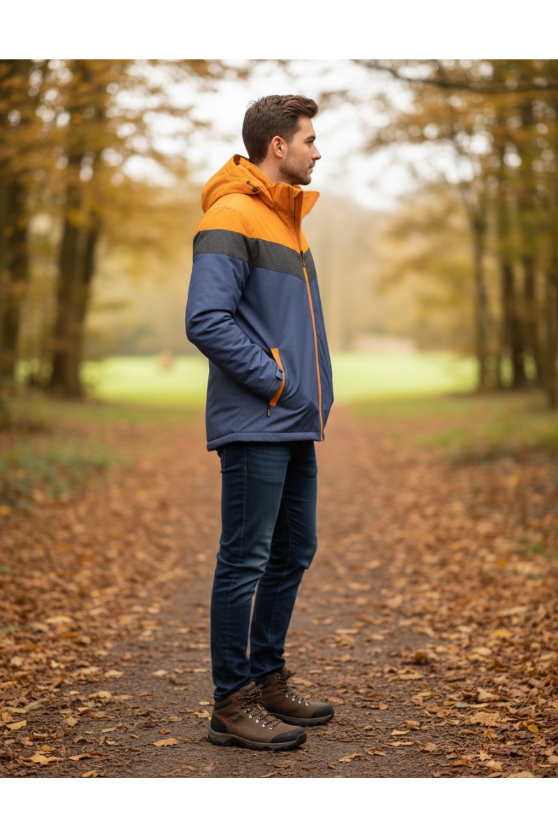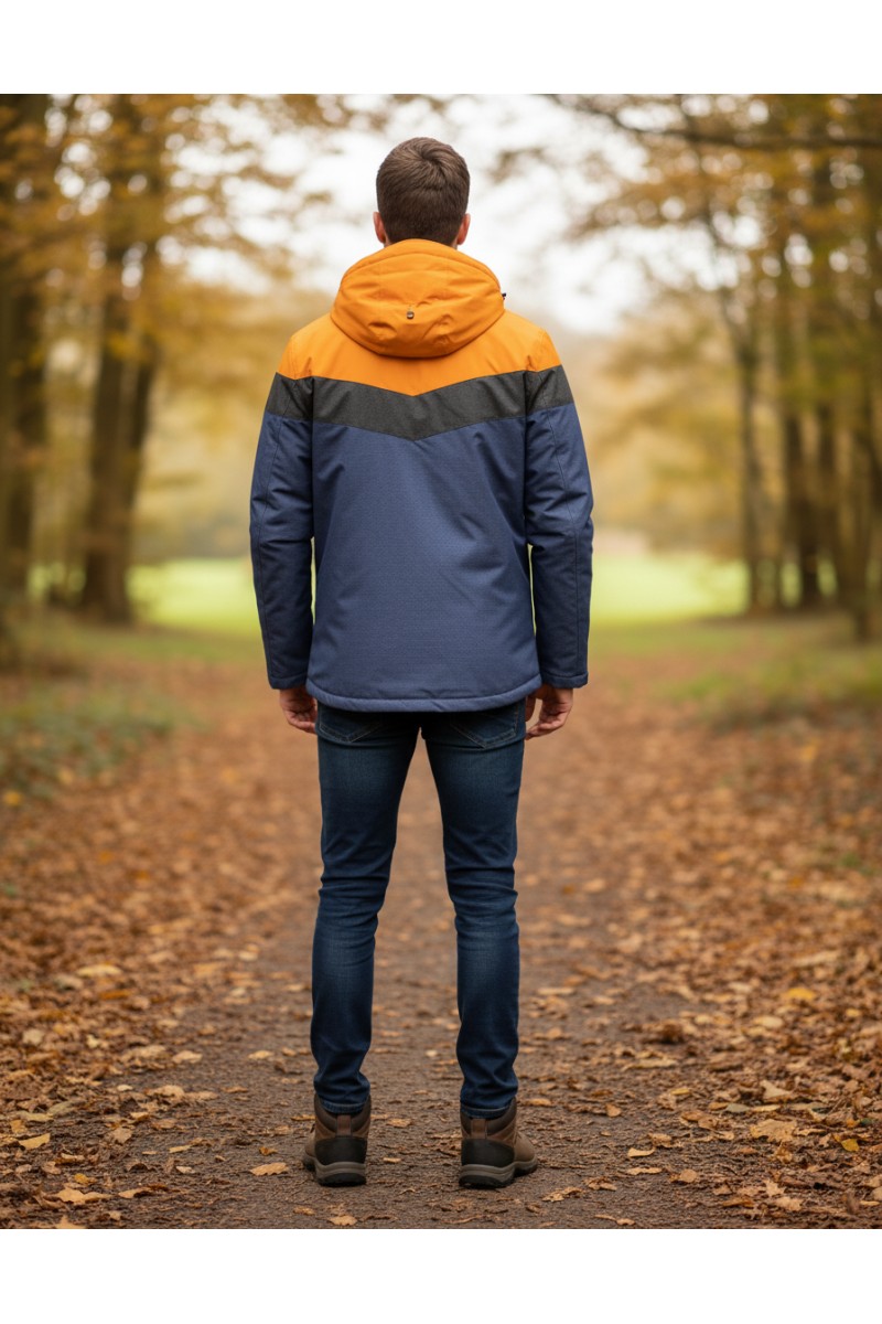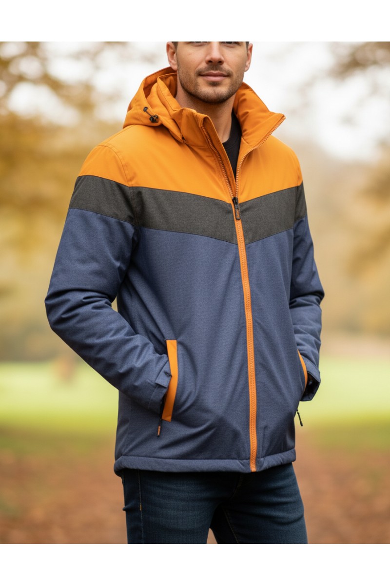 Kurtka męska ocieplana z kapturem - 3PSC - pomarańczowa/szara/czarna