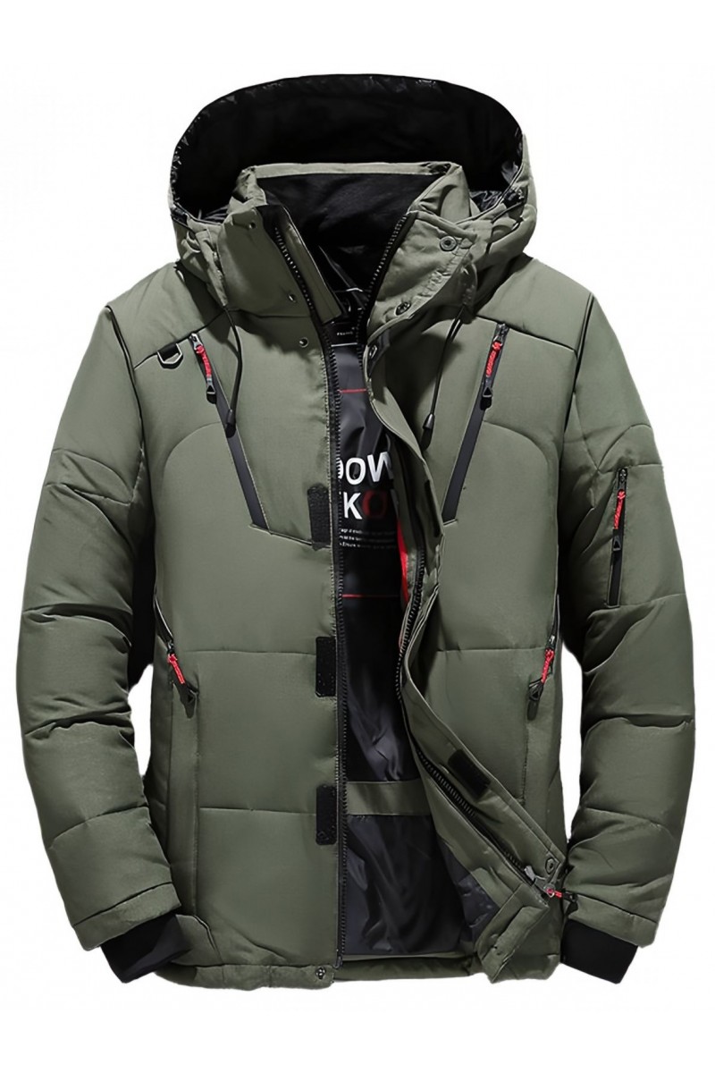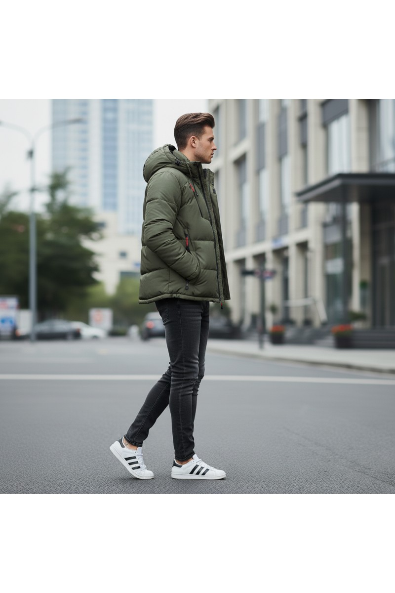 Kurtka męska zimowa ocieplana z kapturem - 013 FKOW - khaki