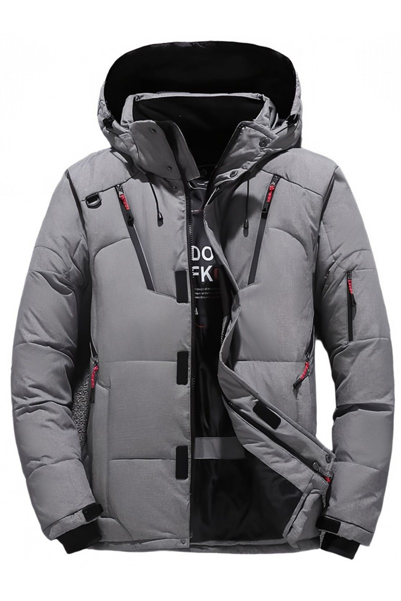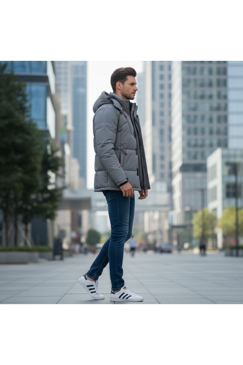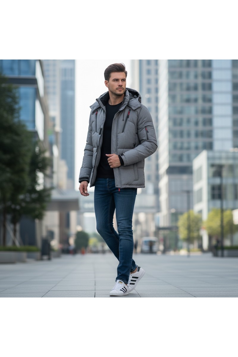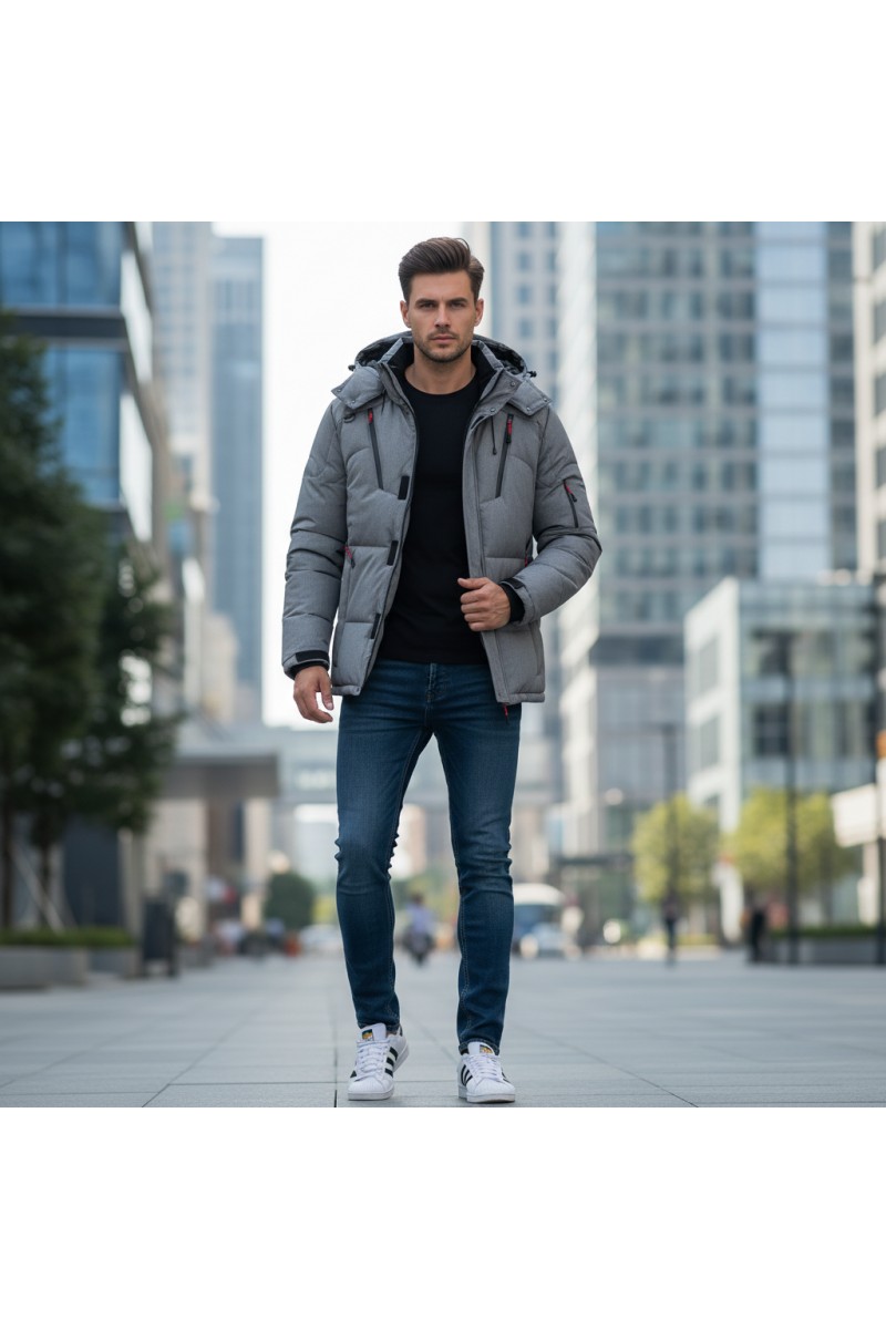 Kurtka męska zimowa ocieplana z kapturem - 013 FKOW - szara