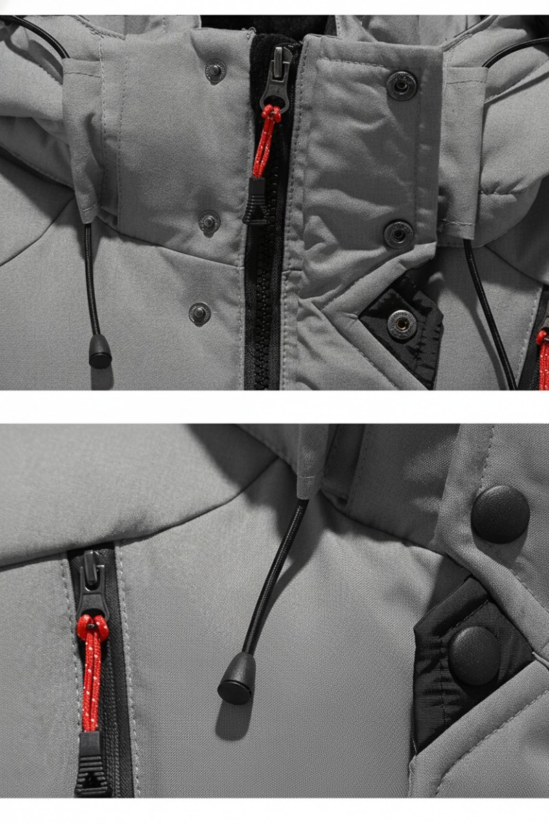 Kurtka męska ocieplana z kapturem - 3PSC - pomarańczowa/szara/czarna
