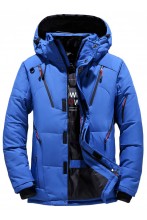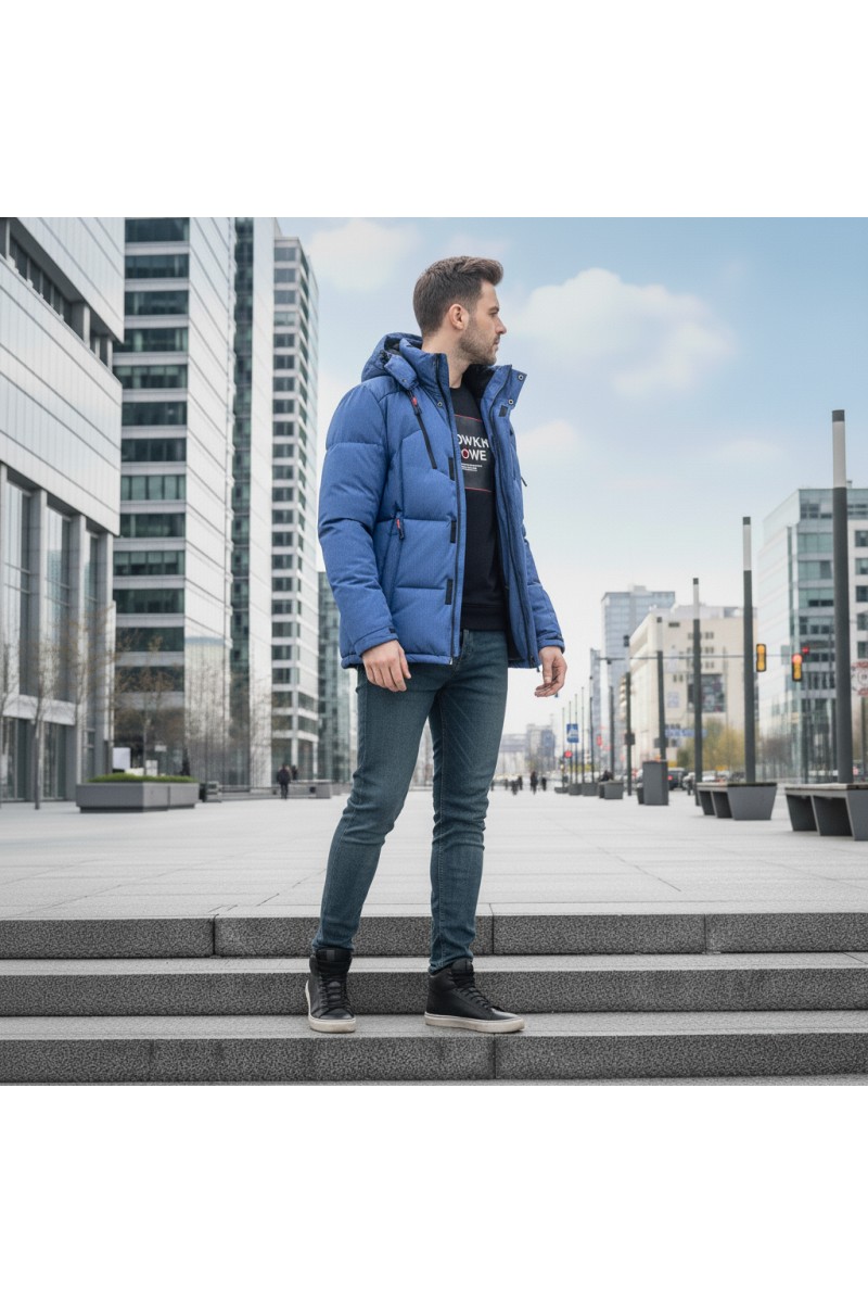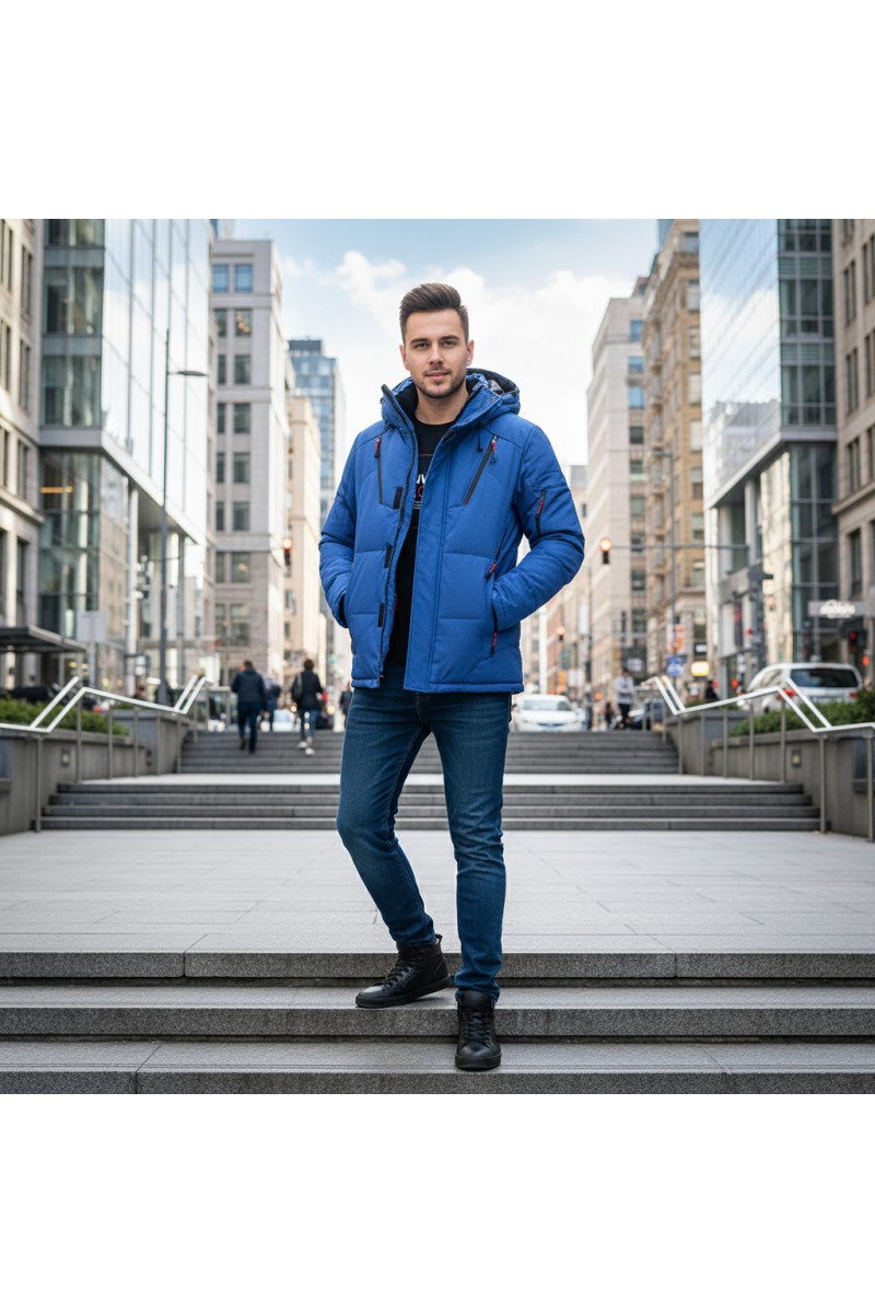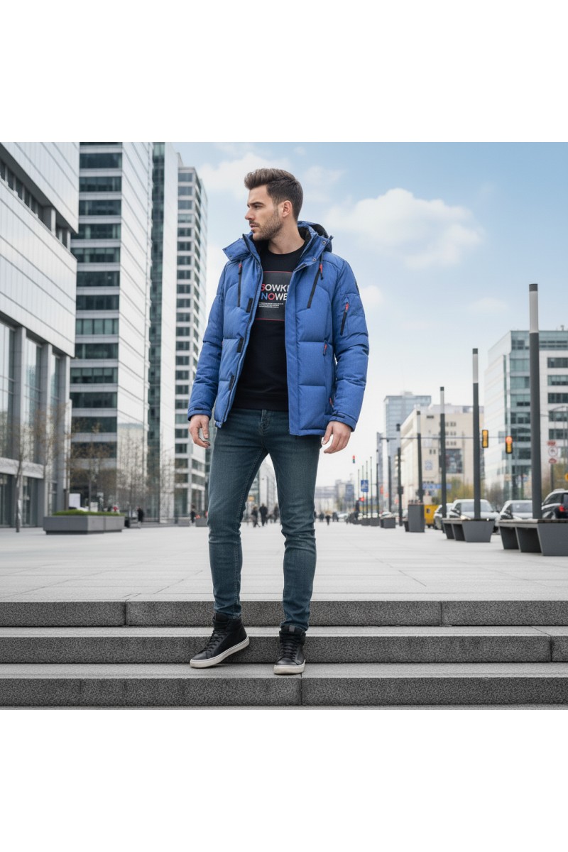 Kurtka męska zimowa ocieplana z kapturem - 013 FKOW - niebieska