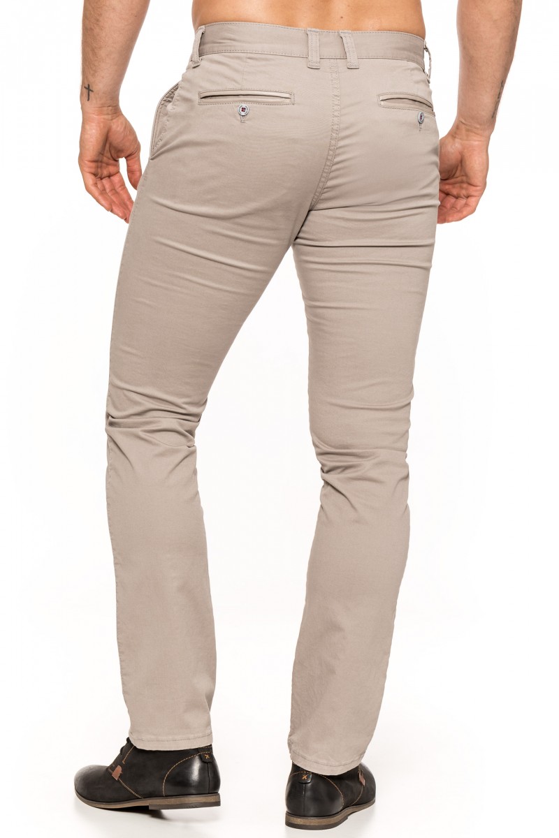 Modne spodnie męskie polskiego producenta w piaskowym kolorze.
