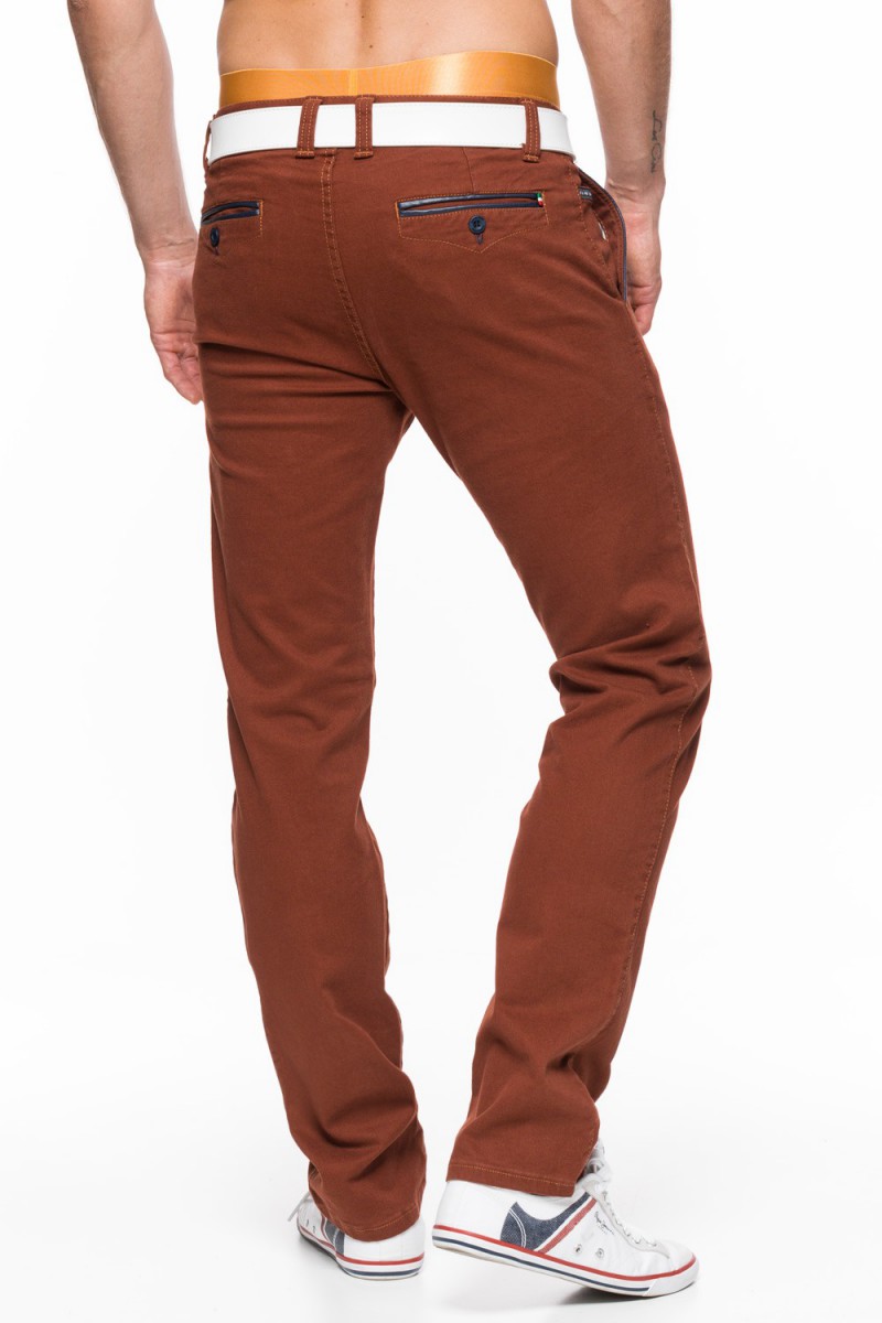 Stylowe spodnie męskie – chinosy – ze zwężaną nogawką na dole.